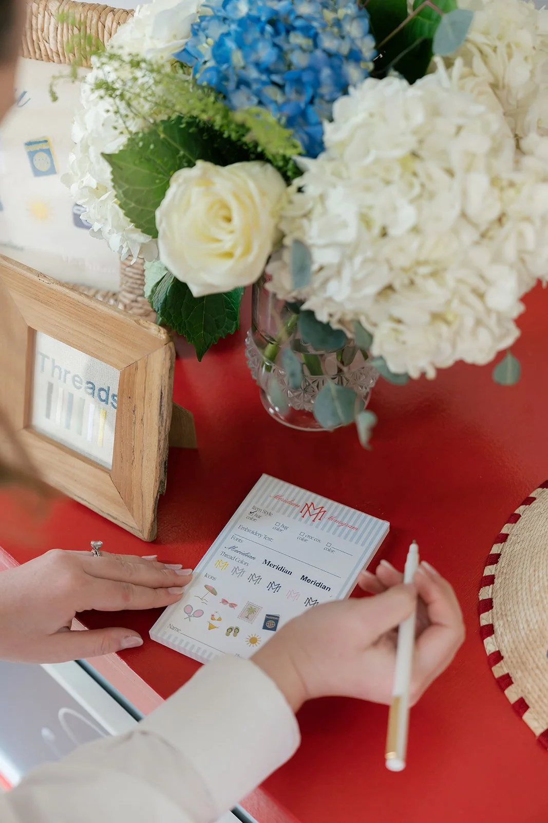 Our team arrives early to set up a fully branded embroidery station — professional, beautiful, and ready to wow your guests.